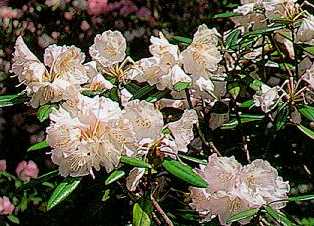 山麓の山ノ神地区では4月から5月にかけて、山の女王「シャクナゲ」が満開。ピンクや白の大きな花が咲き、春風に乗ってあたりは甘い香りでいっぱいです。 |
