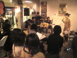 ◆アフター・イン・ストア・ライブ 日付が変わる頃まで・・セバスチャンの初歌声も聞けました。 12月16日にpoco a poco(Pirimuとのデュオ/スペイン語ですこしづつの意味とか)で登場予定。 もちろんMA2&まつみ、あつみ、かつみの「つみ3トリオ」も居残りで楽しく過ごせました〜お疲れさんでした。 |