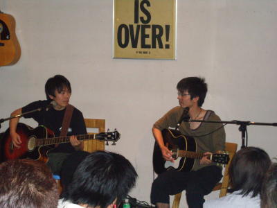 ◆異端児合奏兵(熊本) やや不安げに顔をみあわすお二人、そう、バンド名のイメージとは違い、そこは正当派ポップ・ロックバンド。ところがその不安そうな訳は、突如(当日午後)のメンバーの入院(翌日には退院する予定)。そう、ドラム・パーカッションが急遽の欠席。 初のトラブルにもさぐりながらも決めてくれました。