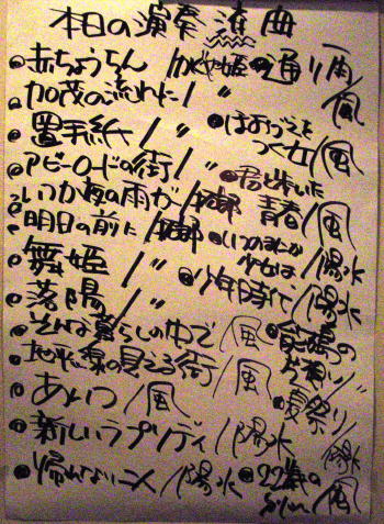 もちろん、譜面もなくても大丈夫の定番曲。全員での大合唱。 今回、初のアーティスト限定企画、しかも重複曲禁止も楽しめた感じで、まずは好評。