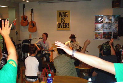 今回、完全アウェイという観客と空気。ややテンションも低めの感じは「今日は2曲」ですというコメントから察しも・・で、その2曲でウォーリーにアクシデント、歌が停止。目のかすみでというコメントと持ち前のトークでひとまず歌い終えるも、この空気感、定番SLOWLIFEの曲目からこれを挽回する選曲は・・私の脳裏をかすめたのは「タガタメ」「糸」の2曲、そして、ウォーリーの歌い出しのは「タガタメ」・・さすが、ホッ。すると今度はトミーのコーラスが入らない?あれ?あとで尋ねるとバージョンを変えたのです・・とのコメント。さすが、最後はバシッ!と決めてくれました。
