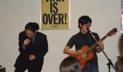 ◆山下祐輝(山鹿) 体調管理ミス! 熱と咳ながらも懸命のボーカルは説得力あり! いい曲やね〜という観客の声も聴こえてきました・・・ますます独自の領域をつくりあげてきています。 間にはさんだ新作「若年犯罪」も流れにうまくのっていたし、最後の「描くんだ」も出来上がってきましたね〜。そういえば最近「術ーすべ」も封印するほど、曲も増えてきています。