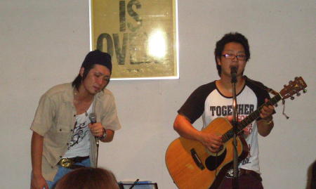◆GON'S(大牟田) この夏、約3週間ぶりのライブって?えらく間があいてますね〜。 めずらしい・・、けどいつもと変わらず元気いっぱいの登場からスタート。・・・が、じゅんくん(右)のノドの調子が悪く、歌声も苦しそう・・昨夜の飲み過ぎとか・・体調管理ミスですね、残念。 次回、9月20日にリベンジを期すのでした。