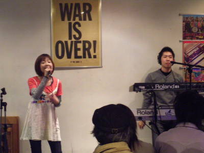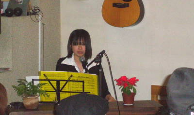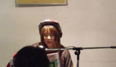 なかなかの度胸の彼女。 ・・今回、異色?の1曲目は「さくらんぼ」、あれ?キャラが違うぞ〜という感じでスタート。 途中、マイクトラブルなどもありながらも、2曲目以降は独自のスタイルと選曲。 もちろん緊張もあったでしょうが、全体的に早い展開がおしかったな〜 |
