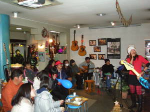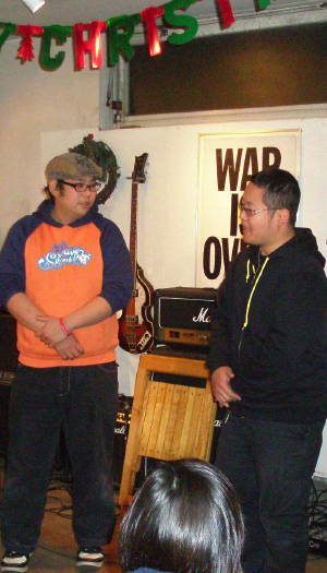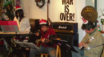 最後は全員で「HAPPY CHRISTMAS/WAR IS OVER」の合唱。 ボーダーラインズ/MACOがひっぱってくれました、ありがとう〜。 |