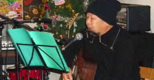 ANDY> かしらのハープのサポートで2曲。 サイクリングの告知までしてくれました。 写真が撮れませんでした、ごめんなさい。 かしら>↑ ハープをからめ、拓郎節で個性あふれるのクリスマス。 |