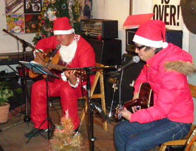 恒例となった「クリスマス」ライブ。 今年も多数の方にご出演・ご来場いただき、楽しいライブとなりました。 ありがとうございました。 数日前より寒くなり、まさにクリスマス日和。 今回はギタリスト/フミヤが大活躍◎。 ギター教室の生徒さんたちの発表の場ということも兼ねての登場と参加バンドもあり、(1)(5)(9)(13)に出演。 出演順: 1>はると(小4) 2>もぐもぐこんぼ(お笑い) 3>ライフライン外伝 4>綾香papa 5>ボーダーラインズ 6>かしら 7>ANDY 8>立花綾香 9>レッドゾーンはいります 10>山崎 11>Southern Comfort 12>山下祐輝 13>鉄骨&鉄骨ガール |