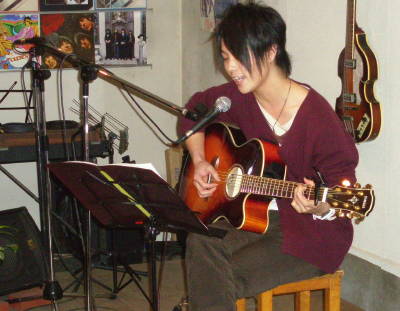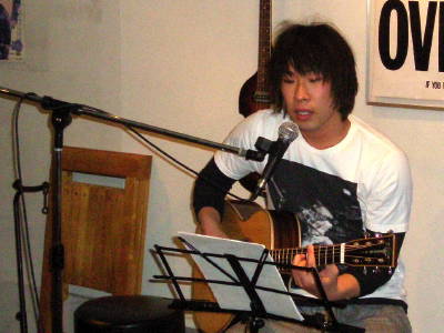 以前はバンドで活動、最近はソロで弾き語りということで、地元中心に活動中ということですが、まぁ、初の場所でもあり、遠くを見つめて歌う眼差しも緊張された感じでした。