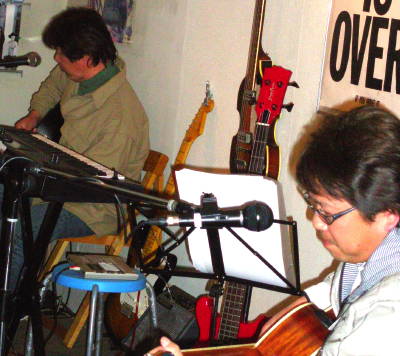 バックをかためるサポート陣も、懸命の練習の成果を発揮。 今回はめずらしく打ち込みなど、リズムも組み込んだ新曲「翼」も完成・披露。 その後、今回のサポート陣/ギター&ボーカルの二人の「おやじパフォーマンス」をはさみ・・ということになったのですが、互いのモチベーションをうまく引き出した内容で、じっくり聞かせてくれました〜。