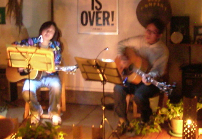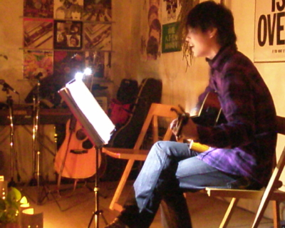 初となるエコライブ、昼間から来店で照明がないので明るさ等を気にしたり・・入念な準備みたいです。・・しかし、本番は落ち着いた雰囲気でオリジナルとカバーなどを5曲。 バラード系が好みとのコメントもあり、暗がりライブにはぴったりだったかも。 声量もあるし、抑揚もうまくつけ、これからが楽しみのホープです。