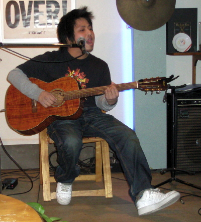 タッピングギターと流れるようなメロディライン、やさしい歌声。 当店初、今年初ということもあり緊張する〜とのMCとは違い、聞かせどころ満載のひとときでした。 洋楽カバー(レッチリ)あたりもめずらしい選曲ながら、彼のスタイルにピッタリ。ビートルズの「ストロベリー・フィールズ・フォーエバー」のイントロから始まるオリジナルもうならされました◎ 次回は4月9日(土)出演予定、期待しましょ〜。 演奏曲:Face(knife)/アンダー・ザ・ブリッジ/赤猫/スプリング・フォー・エバー/2356 |