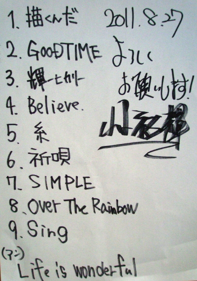 「輝ーヒカリ」> 「SIMPLE」> 「OVER THE RAINBOW」 今回のたっぷり企画ライブ、もちろん流れも検討し、選曲された訳だが、良い意味でまさに「たっぷり」、軽く流せる展開がないほどだ、濃いという印象は◎。 完成の新作CD(4曲入り)からの曲も全曲聞かせ、やり終えた感も目一杯。 満員の観客も彼の人気と人徳の賜物。