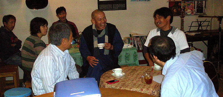◆ガセ(山鹿 from 手前味噌) 岡林、高田渡などを彼のスタイルで真剣に歌い上げます、他の出演者を見た上だから余計に緊張したそうだし、しっかり届けそうと気持もはいります。 最後はメンバー3人で「自由への長い旅」。 |