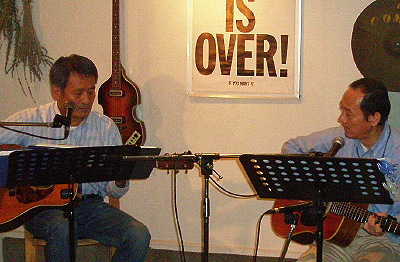 フォーク&ブルーグラスデュオが初登場。 華麗なツインのギターピッキングとコーラス、インストなど、存分に披露いただきました。 |