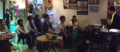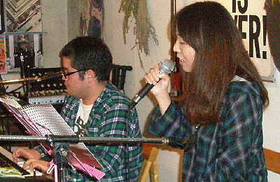 ◆youmon(ゆうもん/熊本) 女性ボーカル「ゆう」とキーボードシンガー「木村昌孝/自称・キムモン」とのデュオ。 カバー曲なども取り入れ、キムモンのオリジナルもからめながらの全5曲。 お互い、別の活動もあるので、どれだけ時間をあてられるかで、もっと良くなるハズ〜。 演奏曲」ひとりぼっち/守ってあげたい(ユーミン)/くちばしにチェリー(EGO- WRAPPIN')/ふたりの夕日/to U(bank band)