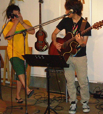 ジャンケンで負けてもかたくなに2番目を主張の彼女です。 演奏曲:願い/帰り道/素晴しい世界/朝陽/Kiss 絵画に添えられていたいた言葉にメロディをつけたという作品「願い」、そしておなじみのナンバー「kiss」ほか。独特の空気感でゆったり聞けます・・が、今日は少しノドの調子がよくなかったのかな〜という感じも若干しましたが、それは丸田くんもありました・・・演奏前に一度発声したほうがよいかも?です。(ラハーサルとは別にね)