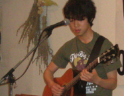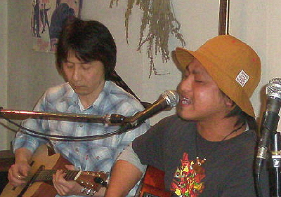 ◆なお兄(熊本) 和菓子職人が本当の顔なのか?唄うたいが本来の姿なのか?「友達屋」銘菓を携えての登場は、じっくり堪能の3曲。 |