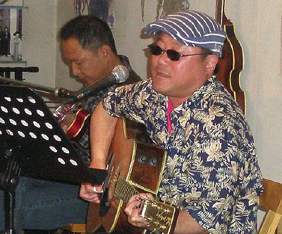 ブルースの定番とラブソングの3曲で、長丁場(3時間)の締めを飾ってくれました。ギターサポートは「エディマツ」。 演奏曲:Sweet Home Chicago(ROBERTJOHNSON)/Darlin'/花 |