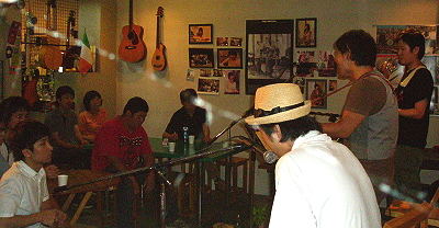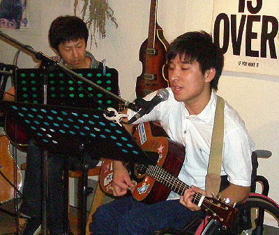 ◆ハラッチョ(熊本)&ケンピー(山鹿) 高次脳機能障害のリハビリ中の二人。 で、まずは今回、初登場のハラッチョのソロ。 ケンピーがサポートでの二人での1曲。 最後は私がサポートで入らせていただき、ケンピーと2曲。 塩素曲:栄光の架け橋(ゆず)/以心伝心(19)/糸(中島みゆき)/未来への帰り道(コブクロ)
