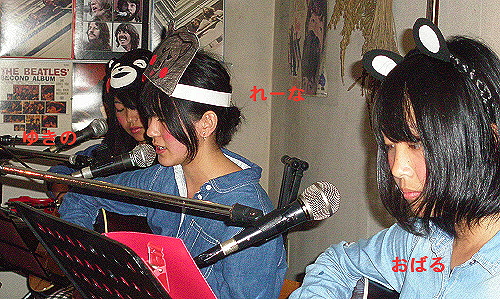 クリスマス企画での好評をそのままに、再度登場!いよいよ春から3年生の3人組。 急な編曲にも応じてくれた「春一番」から、カバ−曲構成で、明るさたっぷり、春満喫の4曲でした〜。 演奏曲:春一番(キャンディーズ)/粉雪(レミオロメン)/明日も(mush&co)/くまもん・春バージョン
