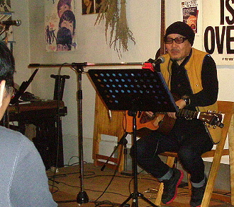 ◆山崎(山鹿) ぎりぎりまで選曲を悩む。フリーライブでの準備も万全。 落ち着いて聞かせてくれます。 曲目:めまい(小椋桂)/加茂の流れに(かぐや姫)/雪どけ水(ふきのとう) |
