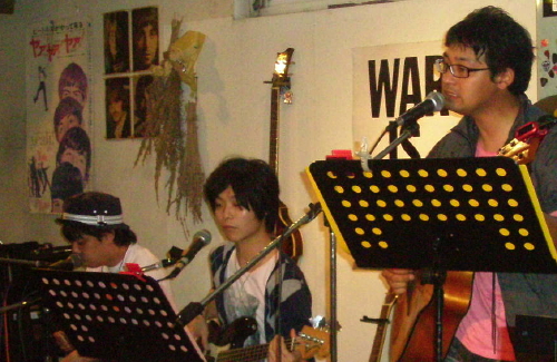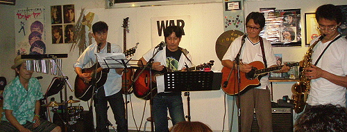 ◆アンディ、すがはら、DaIsUke'&グラス・オニオン 急遽の順番変更で、バタバタのステージとなりました。 ラスト2曲は、久々にがっつりギターが弾けた〜という心地よさです。 演奏曲:FLY ME TO THE MOON(ACジョビン)/ラストショー(浜田省吾)/路地裏の少年(浜田省吾) |
