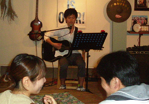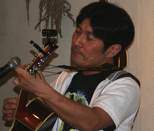 久々に自由に選曲のソロライブ、最近は「・・・しばり」特集が多かったので、選曲もオリジナリティな内容でスタート、トークももちろんがんがんきます。 「おー脳」では、大いに盛り上げてくれました〜。 演奏曲:独立記念日(浜田省吾)/いくつもの星が流れ(西城秀樹)/Not too Late(吉田拓郎)/おー脳(泉谷しげる)/新しい空(小出正則・吉田拓郎)