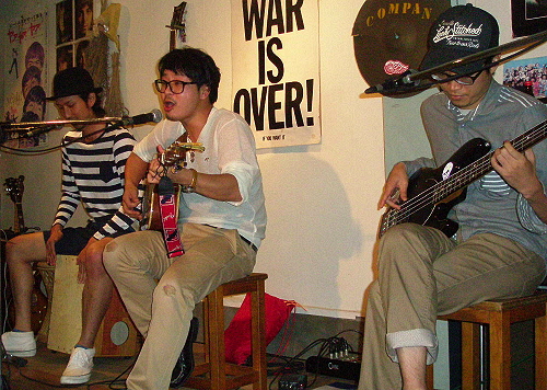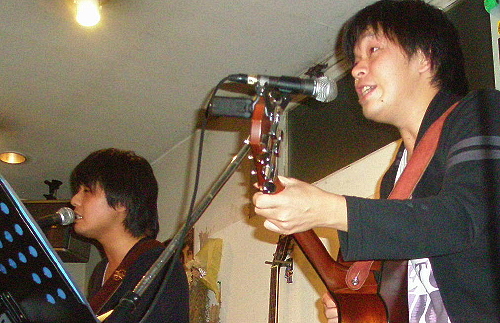 ◆おてもと(玉名) 1曲目から、弦が切れる!というアクシデント、そこを、相方がしっかりカバーしてくれる・・というのがユニットで助かる〜ということでもあるのだが、先は長いまだ1曲目、弦を貼っての時間調整もしっかりつないで、その後は持ち前のオリジナル主体でポップ曲を聞かせてくれました。 正直なところ、おしいな〜〜〜という感じ、もうひと練習ですかね〜。 アンコールまでたっぷりの8曲でした。 演奏曲:飾らない今/ふたりで/バニラモナカ/The Mutablee World/ストローク/ニブンノイチ/夏の終わりのハーモニー(井上陽水&玉置浩二)/アンコール:明星