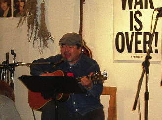 ◆中嶋政彦(熊本) 仕事終わりに市内から駆けつけてくれ(他にも多数)、限られた時間の中、こだわりの3曲。 まっすぐにフォークに対する思いが伝わる・・、そんな存在感ある雰囲気。 演奏曲:僕のエピローグ(猫)/僕のお嫁さん(チューリップ)/雨やどり(さだまさし) |