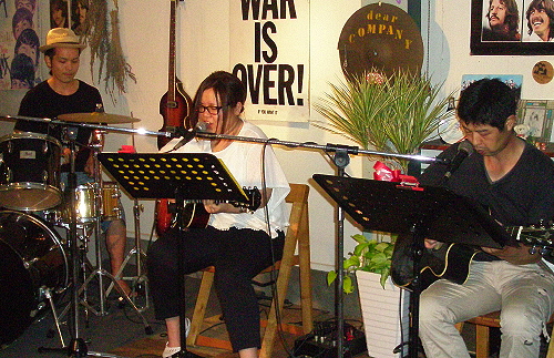 ◆志穂&俊介+志歩(山鹿) ドラムの志歩(高校生)が初登場!(ごめんなさい、あれ?写真が・・・) 演奏曲:いちょう並木のセレナーデ(小沢健二)/CHERRY(YUI)/レモネード(THE BAWDIES)