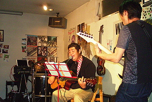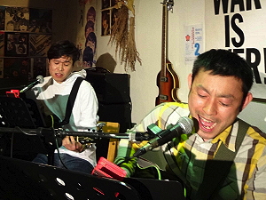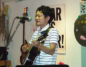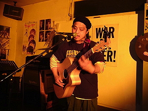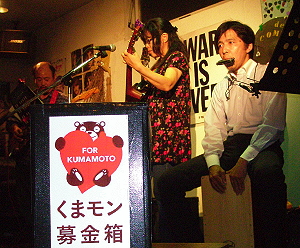 ◆ラフレシア(熊本) ややロックなアプローチもみせてのスタイル。 ひょーひょーとしたトークながら、被災の現実も・・。 演奏曲:迷信/そして僕は途方にくれる/ニンジャリバンバン |