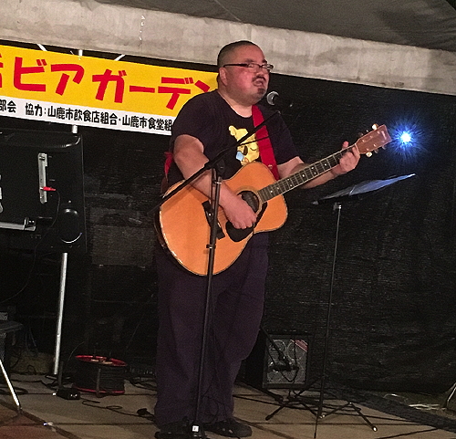 わざわざ駆けつけてくれての参戦です。 ありがとうございました。 アコースティック定番ということで、Amナンバー選曲を奏でてくれます、が、今夜は各所でライブイベントが多々、参加者も少なく、急遽、山鹿市内のビアガーデン状況を確認し、移動後の2ndステージとあいなりました。