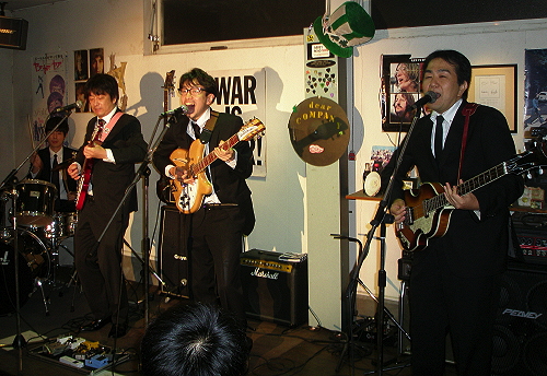 初参戦となるビートルズコピーバンドは、わざわざ佐賀県鹿島市から泊まりで希てくれました。その意気込みが伝わる迫力のステージ。 アンコールまで、たっぷりのひとときは全11曲。 演奏曲:TAXMAN/I feel fine/Nowhere Man/Eight days a week/Day Tripper/Please Please Me/She loves You/Can't buy me love/Isaw her standing there/en:If I fell |