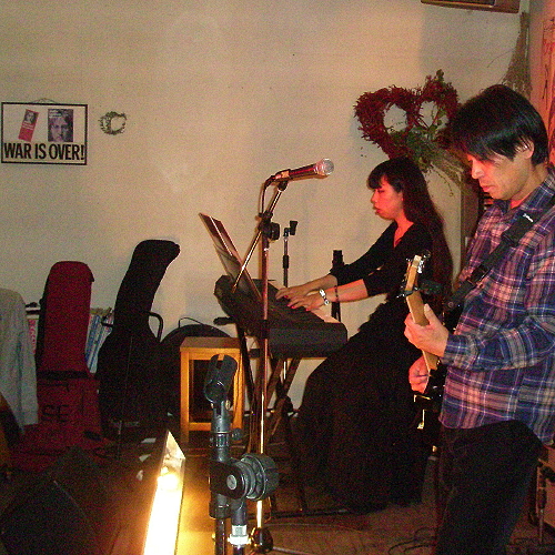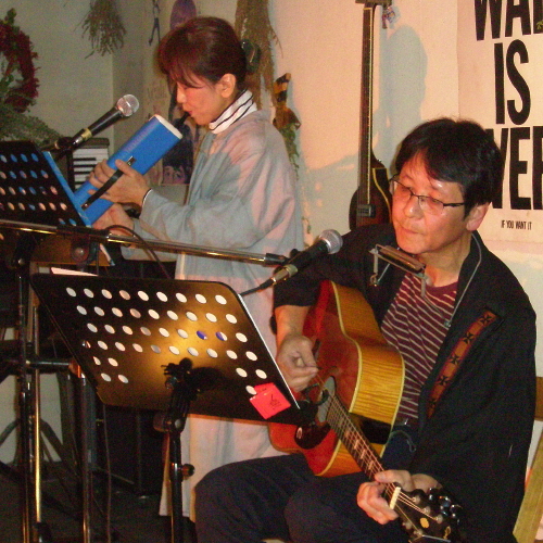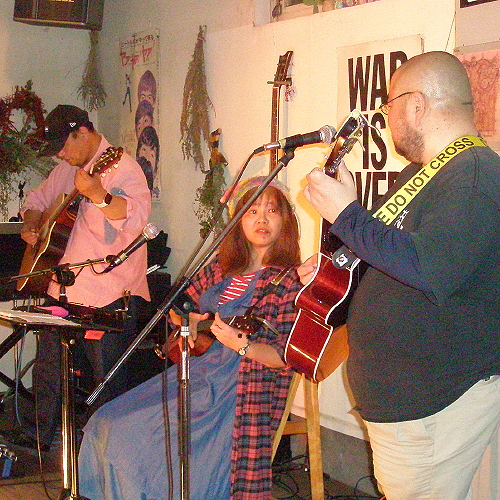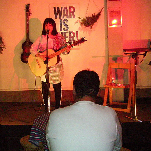 酔っぱらいのgi&gui(熊本)>ハイトーンな歌声でどっぷりフォーク・ニューミュージックテイストでした。 | りふりふ(熊本)>多忙な中、ライブ出演を終え、阿蘇からかけつけてくれました。おなじみのオリジナルを披露。 ![]() |