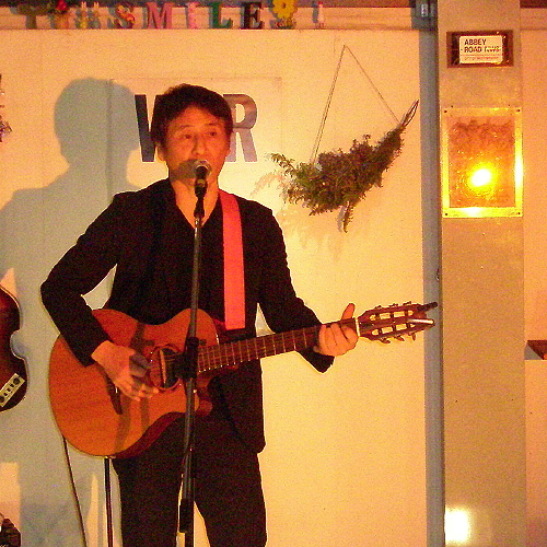福崎正人>福岡から初参加/初県外というUKロック好きという彼が、ひたむきに奏で、歌います、オリジナルCDも作成し、地道に活動中。 |