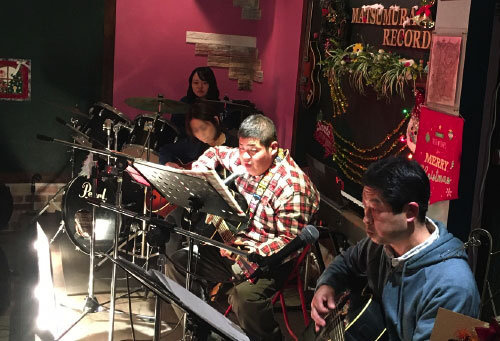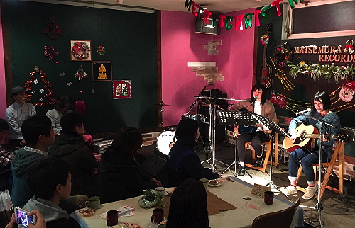 ※恒例となった師走企画ライブ※ 少し早めですがクリスマス第一弾ともなったライブ、今年も昨年同様、ギター&ドラムレッスン中の方々も加わり楽しいひととき。 |