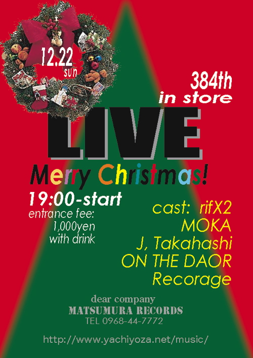 ※恒例となったクリスマス企画ライブ※ 店内内装色がクリスマスにはまる配色!?も功をそうしたか、心地よき雰囲気となり、大いに盛り上がりました。 多数のご来場、誠にありがとうございました。 |