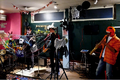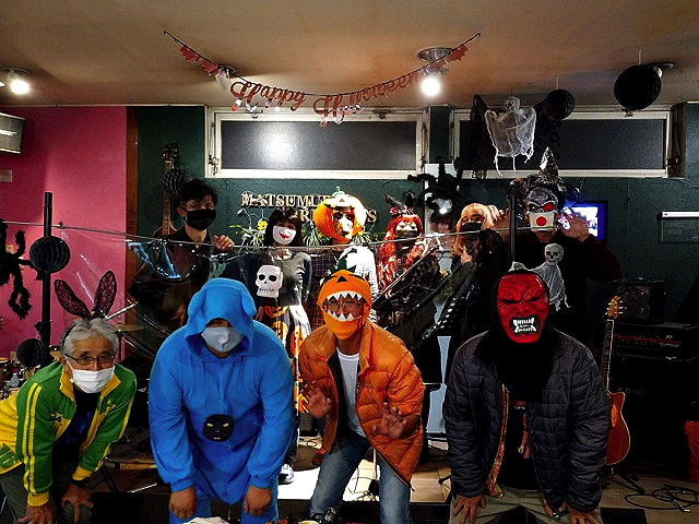 コロナ禍に、対策も講じながら、出演者だけでなく、観覧の方も含め、全員参加型のハロウィンライブ。 非日常感、満喫の空間。 まったく誰かわからな〜い! |