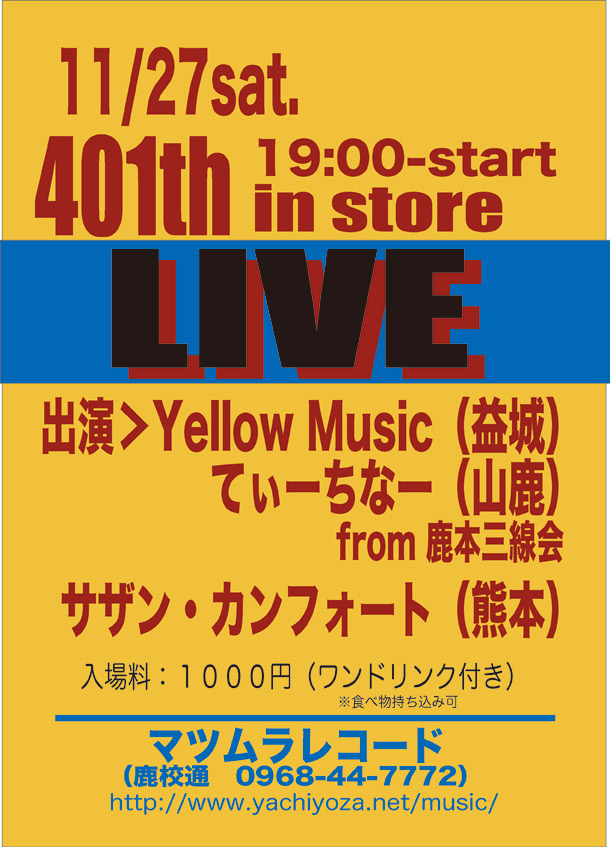◆てぃーちなー(山鹿) 鹿本三線会からの選抜隊!?の初参加。 てぃーちなーとは、1つめという意味なそうな。という訳での401回目の初登場という記念となるライブです。 沖縄民謡をベースに三線と笛、ギターというセットでノリのよい楽しいひととき。アンコールまで、盛り上げていただきました。 演奏曲: