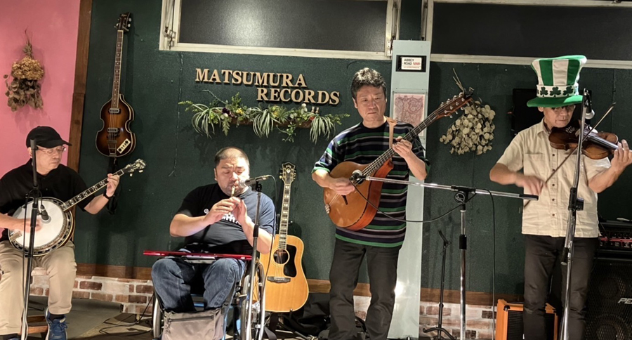◆サザン・コンフォート(熊本) 今回は2人編成となったステージ(ギター&ボーカルとカホン)ながら、迫力ある演奏ではち切れんばかりの宮崎ボイスとカホンの響きが引っ張ります。 もちろんギターもがっつりと・・・。 ◆アイリッシュ・クリーム(熊本) 4月以来、5ヶ月ぶりながら、今回はホイッスルが加わっての4人編成で、ぐぐ〜っと厚みがましたのです。さすがの笛に感服。 10月30日のやまがアートステージに向けての前哨戦でもあります。 演奏曲:Ballyfin Polka/Sliabh Russel-The Blarney Pilgrim-Kesh Jig/Inion Ni Scannlain/Hector The Hero/The Slokit Light/Cooley's reel-The Foxhunter's Reel/The Water Is Wide/Denis Murphy's Polka-The 42pound Cheque-John Ryan's Polk/en: Pasty Geary's-Coleman's Cross