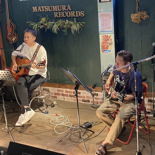 ◆Acoustic Shower熊本) 心地よいノリのギターポップとカホンの構成。 トークも曲の流れに続く展開など、気負わずすすみます。 元同僚というつきあいから20数年というユニット。 今回も楽しませていただきました〜> 演奏曲:メッセージ/僕の一週間/コンビニへ行こう/コロッケぱん/今、何してる?