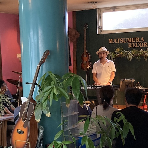 ◆Yellow Music(益城) おなじみながら久々の登場。 今回は自称YMOファンの方もご来店、でその方よりお借りしたユキヒロさんのユニットの12inchレコードを入場時のBGMとして使用。 懐かしくも親しんだサウンドに感激される方もおられ、演奏機材の不調などもありながらも迫力ある内容でした。 もちろん定番の人気ナンバーもよかった〜です。 演奏曲:東風/SOLID STATE SURVIVOR/君に胸キュン/すみれSeptember Love/SELF PORTRAIT/TECHNOPOLIS~RYDEEN