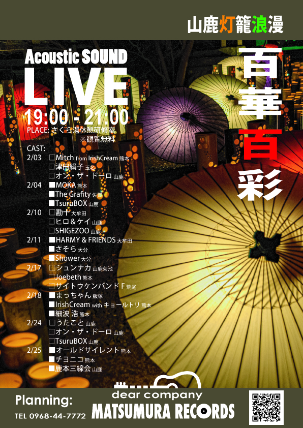 出演>清本誠(菊池) 松見こうすけ(山鹿) Acoustic Shower(熊本) |